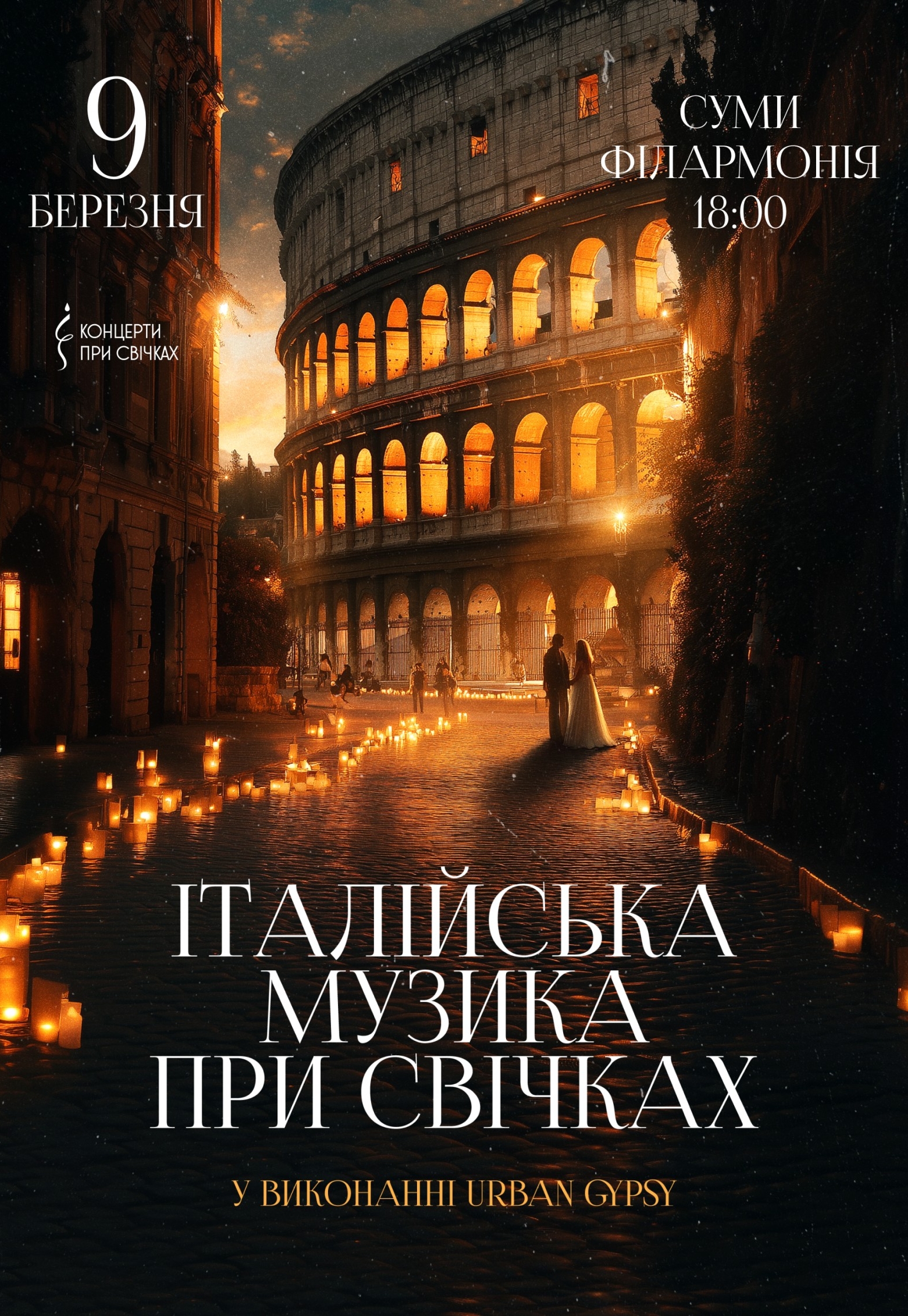 Итальянская музыка при свечах состоится 9 марта 2026, 18:00, понедельник в Сумская областная филармония. С помощью сервиса internet-bilet.ua, Вы сможете с легкостью забронировать, заказать и купить билеты на интересующий Вас концерт, спектакль, оперу, балет, мастер-классы, спортивные и детские мероприятия, оплатив их самым удобным для Вас способом: через интернет банковской картой VISA/MasterCard, наличными или курьером, если сделаете заказ билета c доставкой.