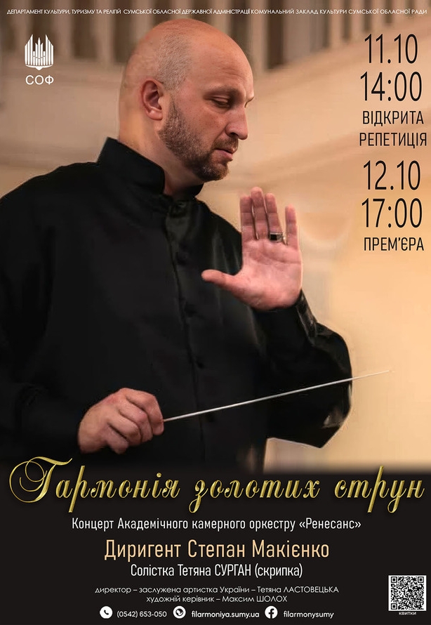 Камерний концерт «Гармонія золотих струн» відбудеться 12 жовтня 2025, 17:00, неділя в Сумська обласна філармонія. За допомогою сервісу internet-bilet.ua, Ви зможете з легкістю забронювати, замовити та купити квитки на концерт, спектакль, оперу, балет, майстер-класи, спортивні та дитячі заходи, що Вас цікавлять, оплативши їх найбільш зручним для Вас способом: через інтернет банківською карткою VISA/MasterCard, готівкою або кур'єром, якщо зробите замовлення квитка з доставкою.